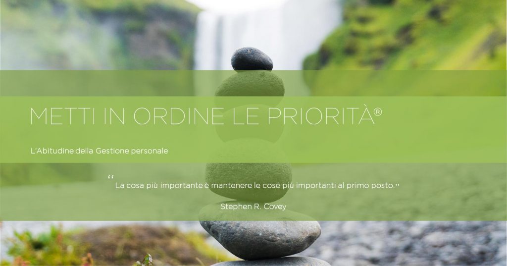 “Mettere in ordine le priorità significa organizzarsi ed agire secondo ciò che riteniamo di primaria importanza. È vivere ed essere guidati dai principi che più apprezziamo, non dalle agende o dalle forze che ci circondano.” – Dr. Stephen R. Covey