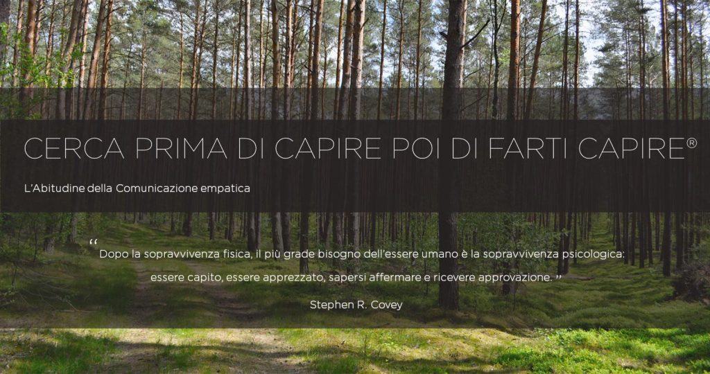 “Se dovessi riassumere in una frase il principio più importante che ho imparato nel campo delle relazioni interpersonali, sarebbe questo: cerca prima di capire e poi di essere capito.” – Dr. Stephen R. Covey